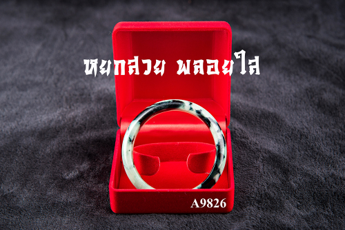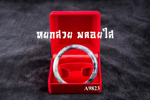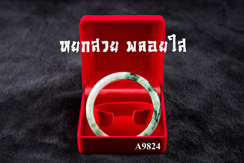 กำไลหยกพม่าแท้ ขนาดเส้นผ่านศูนย์กลาง 63 มม หน้ากว้าง 9 มม