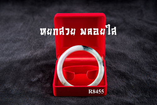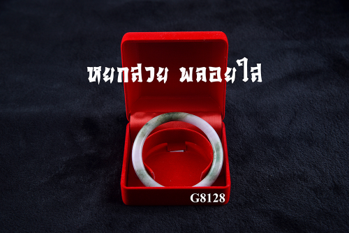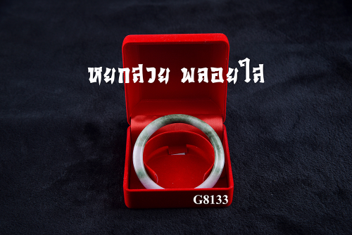 กำไลหยกพม่าแท้ ขนาดเส้นผ่านศูนย์กลาง 64 มม หน้ากว้าง 8 มม