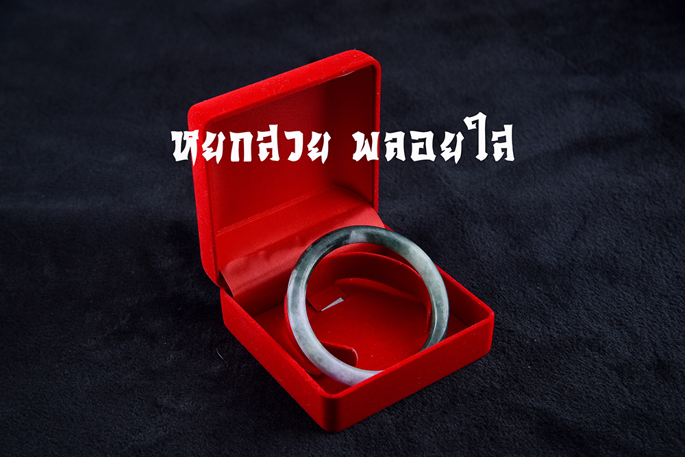 กำไลหยกพม่าแท้ ขนาดเส้นผ่านศูนย์กลาง 59 มม หน้ากว้าง 7 มม