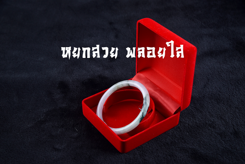 กำไลหยกพม่าแท้ ขนาดเส้นผ่านศูนย์กลาง 60 มม หน้ากว้าง 6 มม