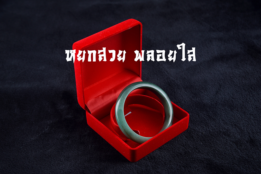 กำไลหยกพม่าแท้ ขนาดเส้นผ่านศูนย์กลาง 60 มม หน้ากว้าง 10 มม